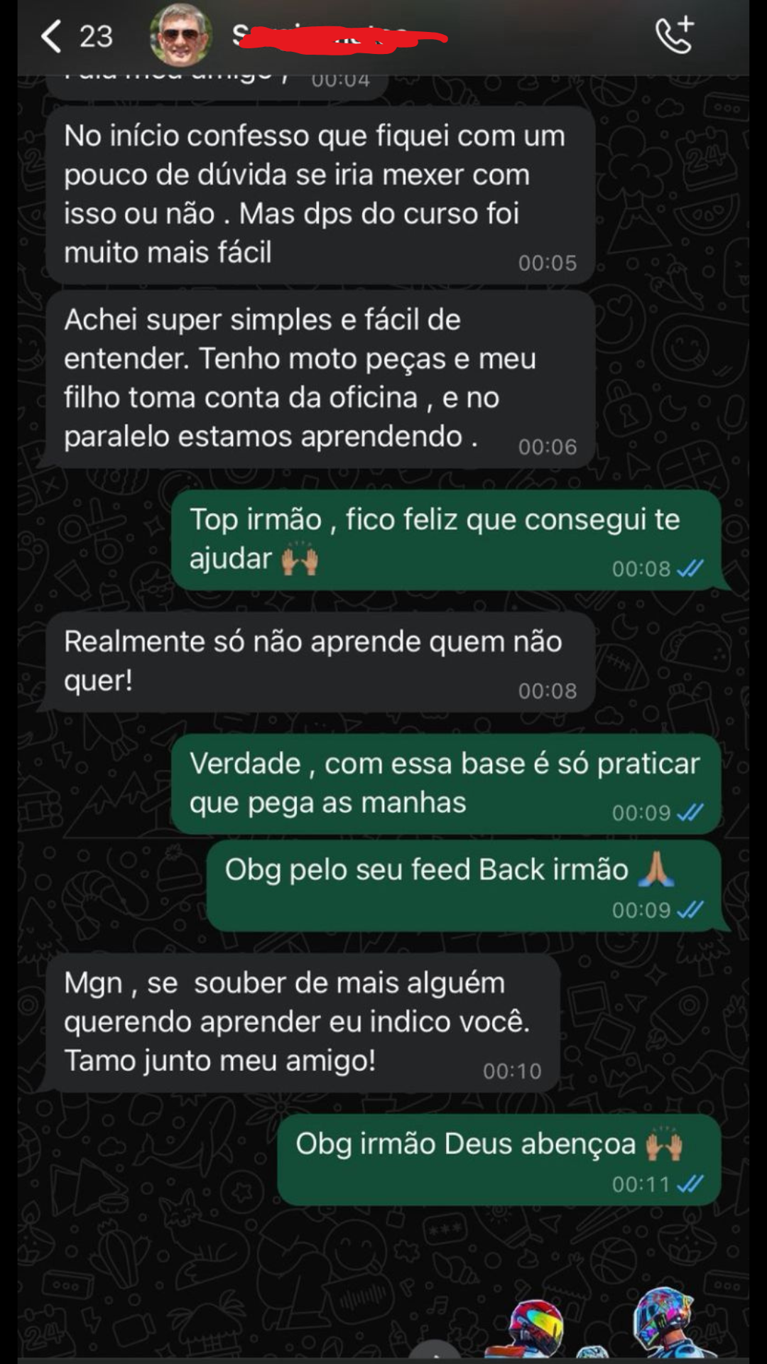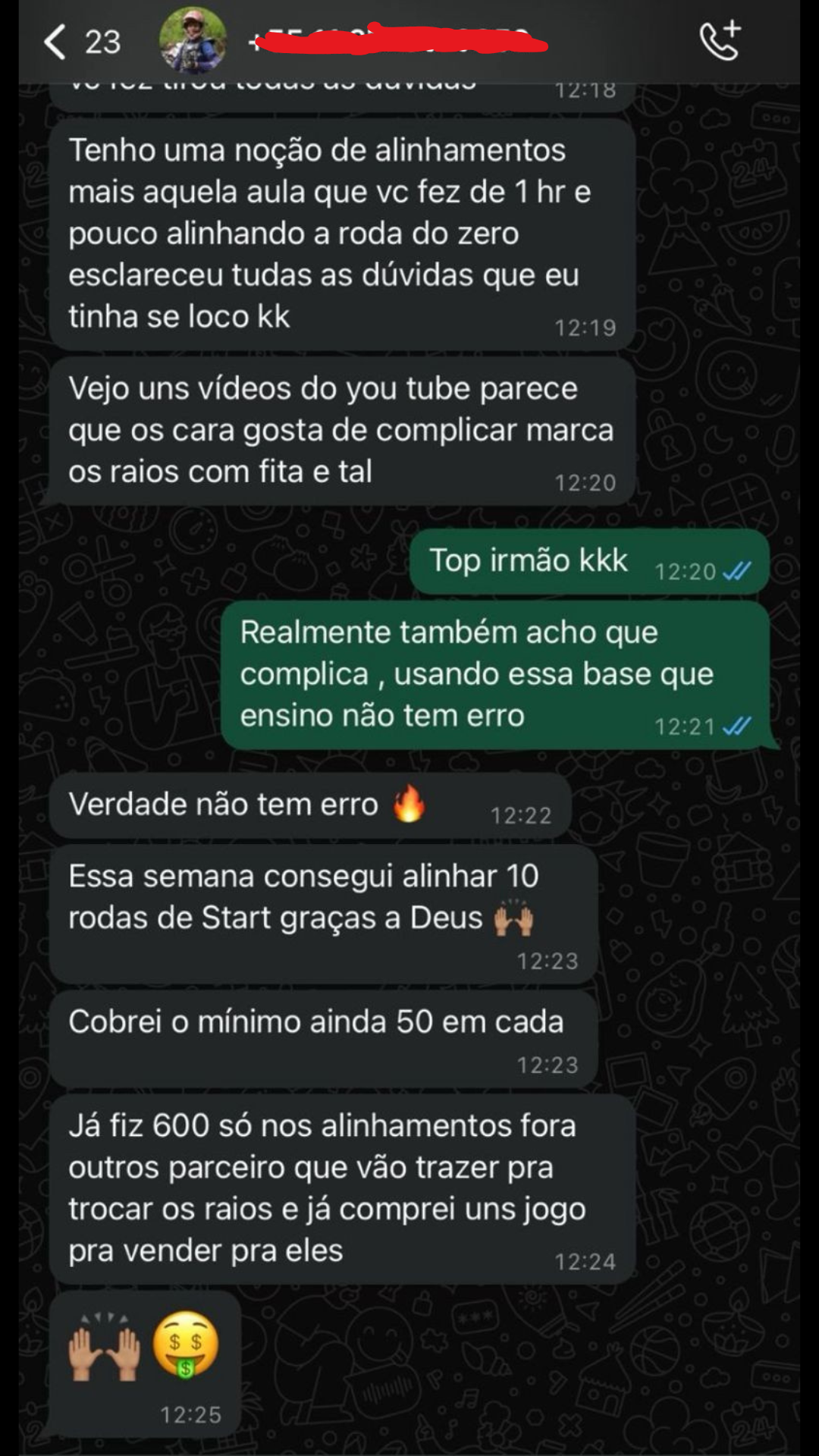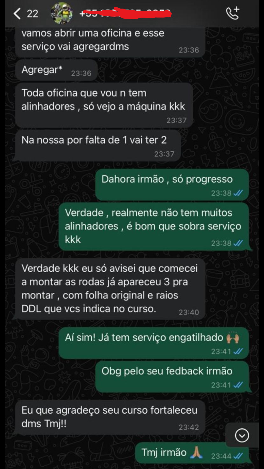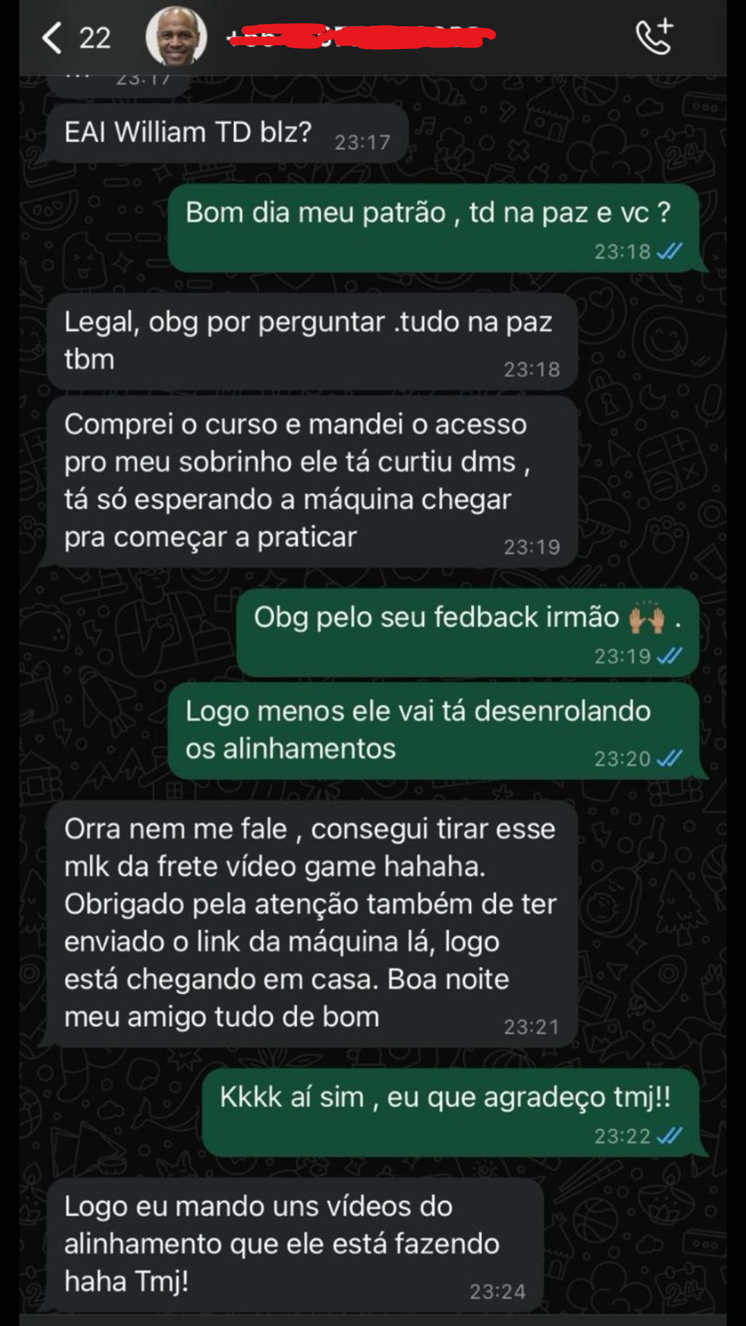 Me chamo William. Trabalho com motos há mais de 20 anos e sou referência em alinhamento de rodas, serviço que faço há mais de 15 anos. Na pandemia, enquanto tudo parou, foi justamente esse trabalho que manteve minha renda e muita gente viu isso de perto. Por ser um serviço escasso, com pouca mão de obra qualificada e alta procura nas oficinas, meus próprios clientes começaram a pedir para eu ensinar. Por isso criei este curso: para ajudar quem quer entrar no ramo, ter uma renda extra ou até transformar o alinhamento de rodas na sua renda principal. Hoje compartilho minha experiência para fortalecer quem quer aprender de verdade.
